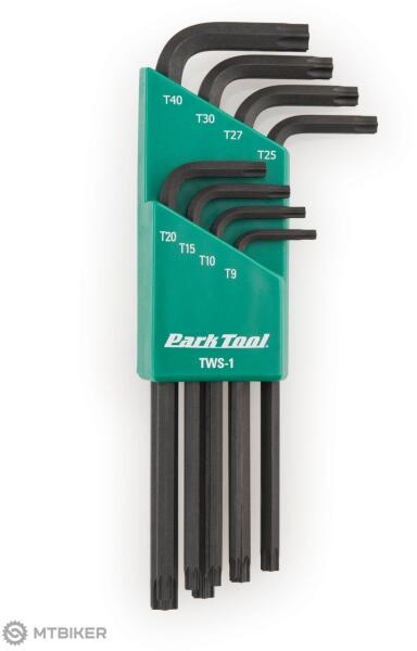 A Park Tool TWS-1 egy nyolc Torx kulcsból álló készlet professzionális műhelyminőségben, T9, 10, 15, 20, 25, 27, 30 és 40 méretben.
